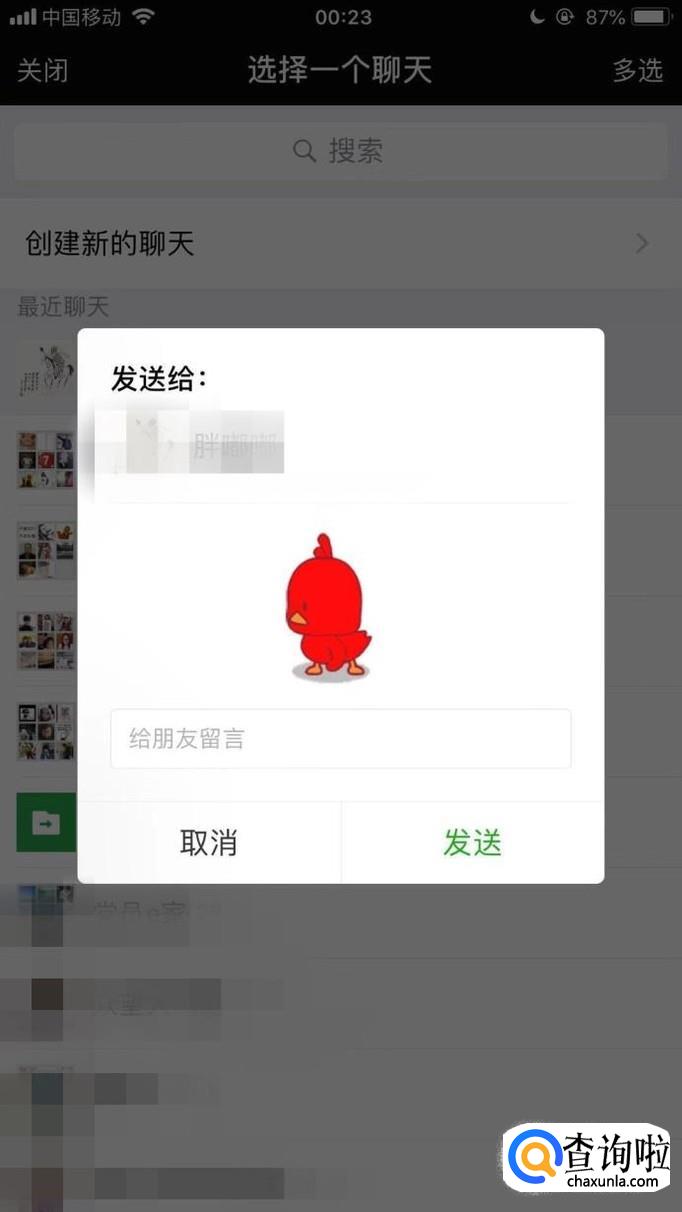 最后。选择一个好友,并点击发送就可以了。