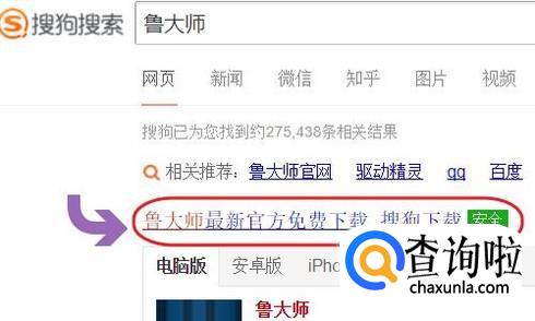 如果还没有下载过它的小伙伴,可以直接通过搜狗搜索“鲁大师”,然后进入到官网将其下载到电脑即可;