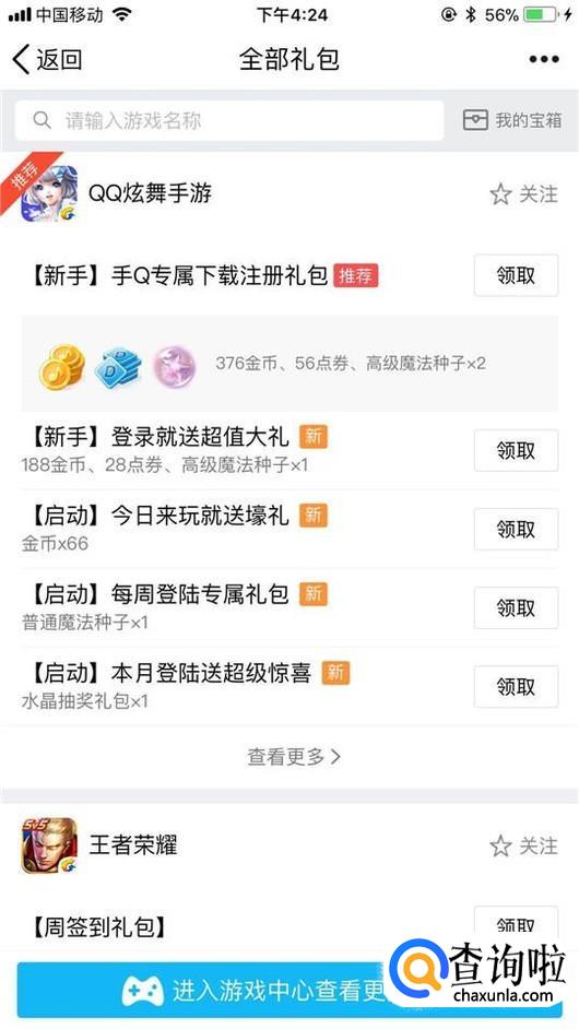 这样进去你就可以看到你想要的一些礼包了,你只要直接点击领取就可以了。