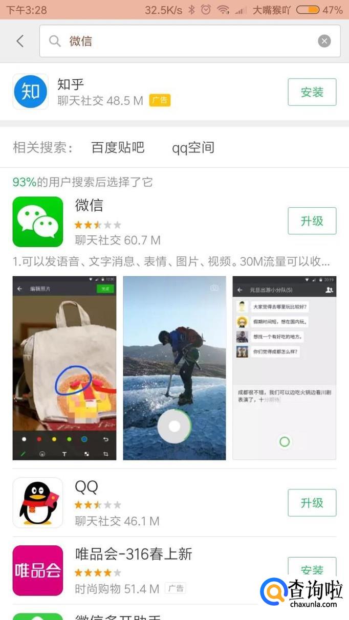 在应用商店里下载安装微信,如下图。