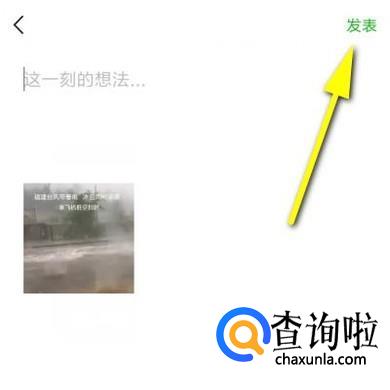 点完成后,转到朋友圈发表视频的界面。然后,点击“发表”,那么,该视频即发表在朋友圈啦。