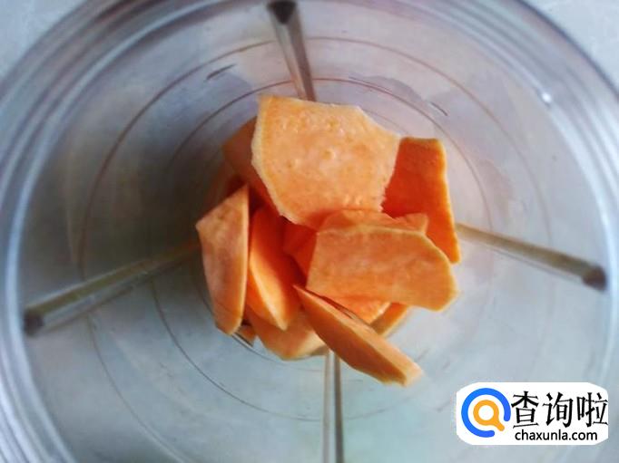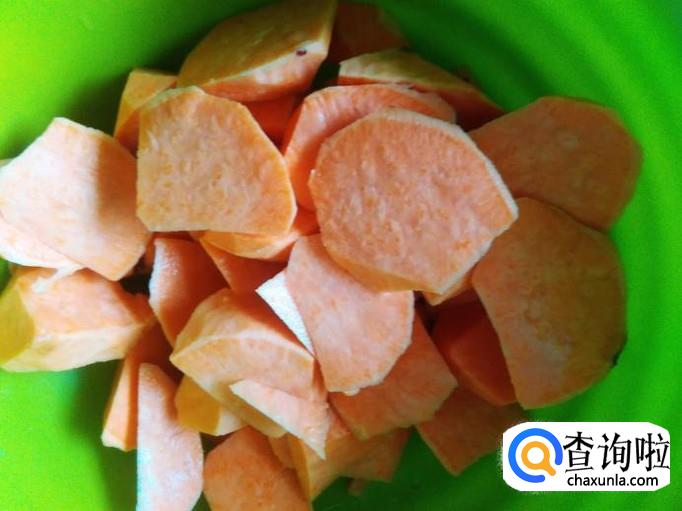首先把红薯去皮,然后切成一块块。