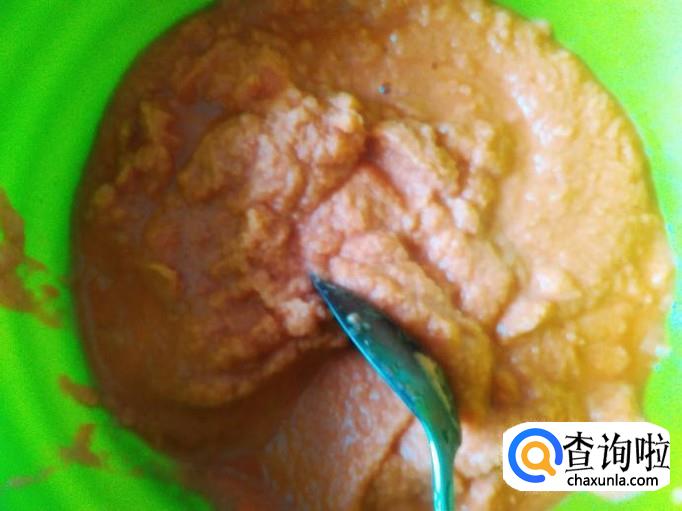 放置打浆机加少量的水打成粉糊,倒到盘里。