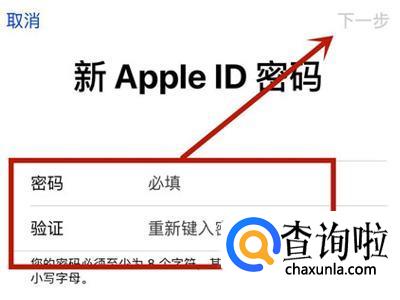 最后连续两次输入新的apple id密码并点击下一步就可以了。