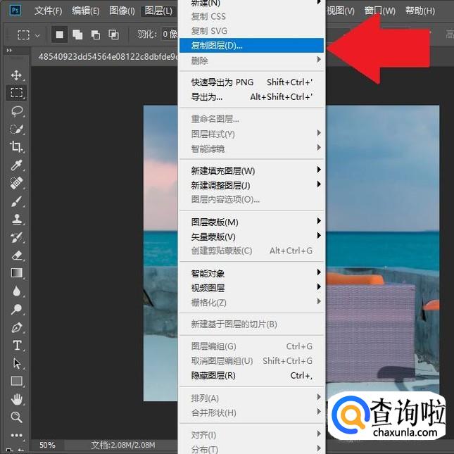 然后点击“图层”菜单选项中的“复制图层”。