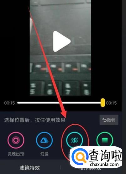 在特效界面,选择“抖动”特效,选择好位置后,按住即可使用抖动效果,如图所示。