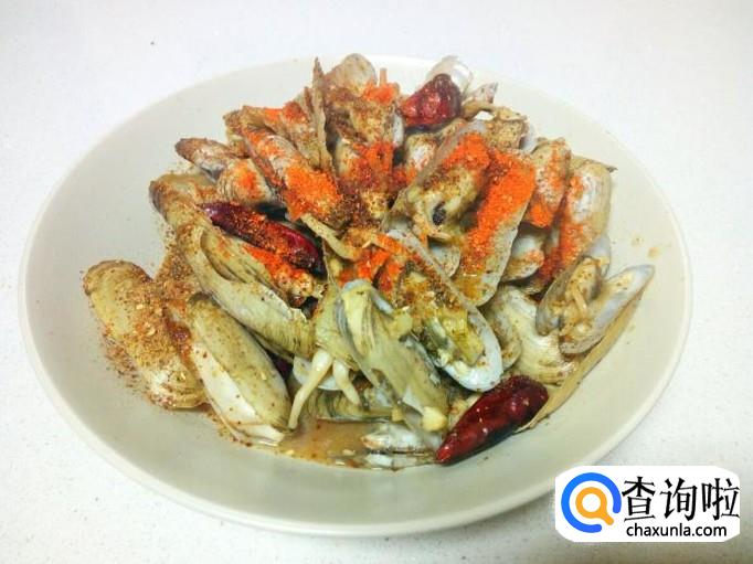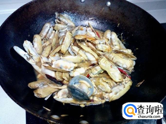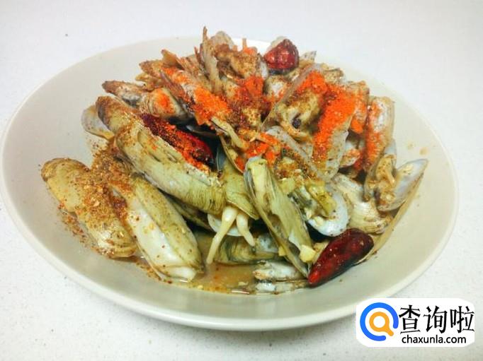 蛏子很易熟,略炒一下即可。盛入盘中,撒上烧烤料就可以了。