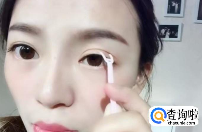 然后我们用双眼皮贴的工具,在自己要贴双眼皮贴的地方划出痕迹,用来确定双眼皮贴的位置。