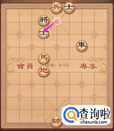 黑方将右走一步,解决棋局局势,如图所示。