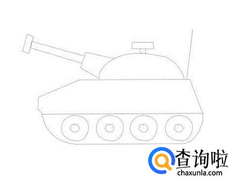 再在坦克的上面画出驾驶室望远镜及发弹筒,这样简笔画坦克就画好了,如图所示: