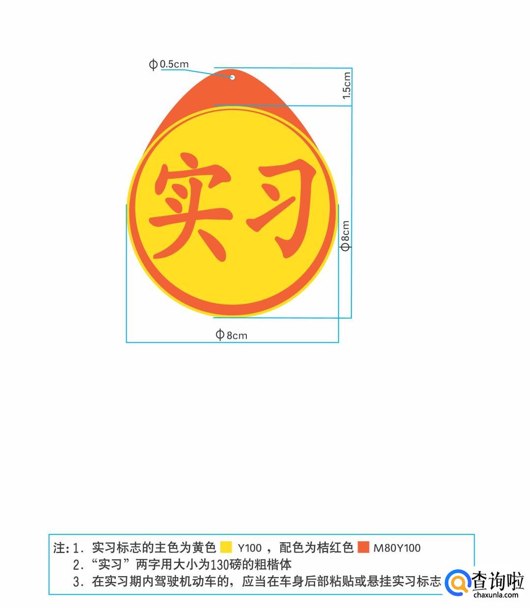 1、实习标志的标准样式是像水滴形状的,规格:160×190。