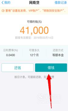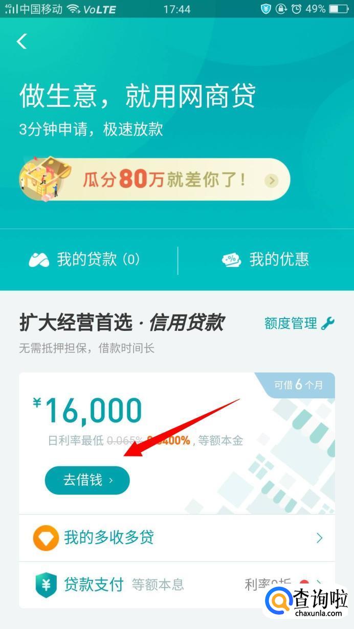 进入页面后,点击“去借钱”选项。会出现借款申请,填好你的借款金额、还款的方式,最后点击“下一步”就可以了。