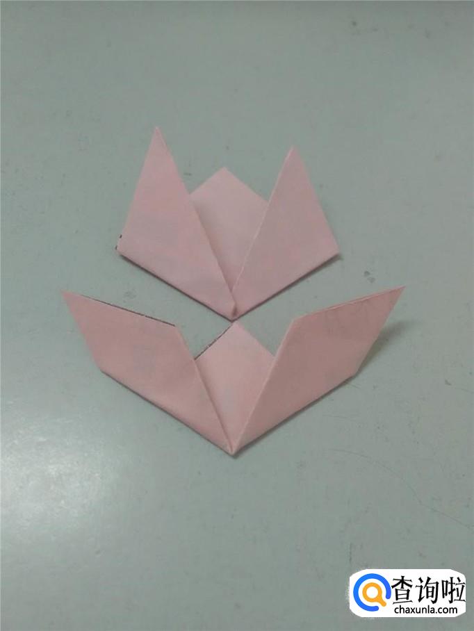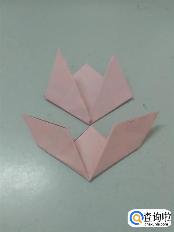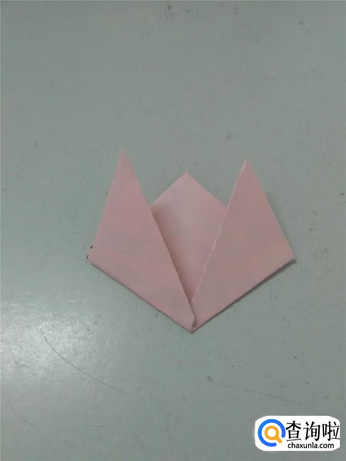 再将两边的角往上折,如下图,就折成了一朵郁金香。