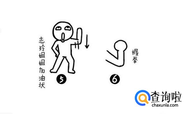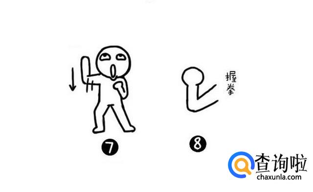 双手成奥特曼的金典动作,头一点一点的,双手从左方到右方晃动。