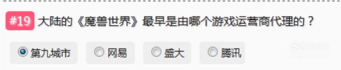 大陆的《魔兽世界》最早是由“第九城市”游戏运营商代理的。
