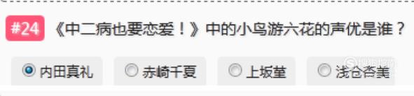 《中二病也要恋爱!》中的小鸟游六花的声优是“内田真礼”。