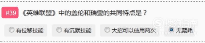 《英雄联盟》中的盖伦和瑞要的共同特点是“无蓝耗”。