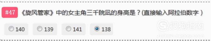 《旋风管家》 中的女主角三千院瓜的身高是“138” (直接输入阿拉伯数字)。