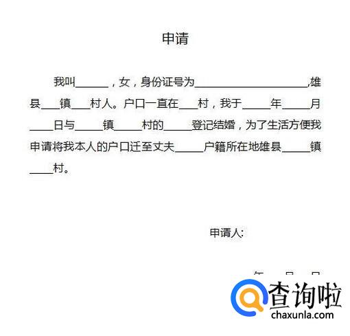 写个申请指的是女方迁户口的个人申请书。