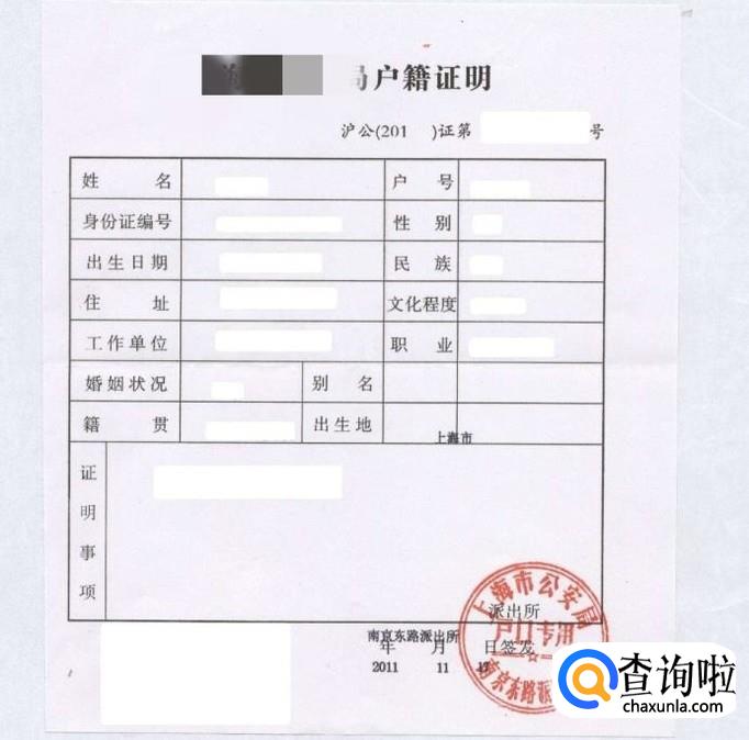 户籍证明。