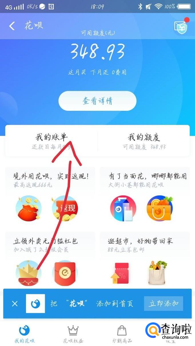点击“花呗”选项,如图1箭头所示。然后你会看到出现一个新的界面,如图2所示。