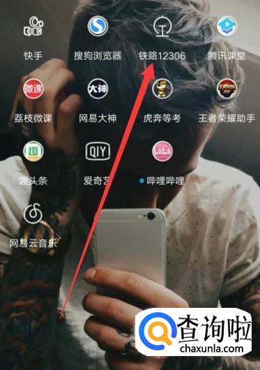 打开手机,找到铁路12306,点击并进入,如图所示。