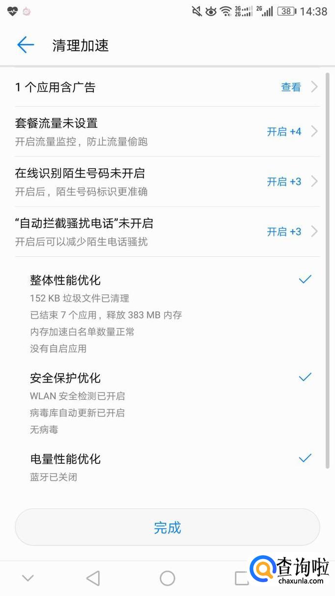 这个时候手机管家会对手机进行清理加速,清理手机的运行内存。清理完后,就可以按完成退出了。