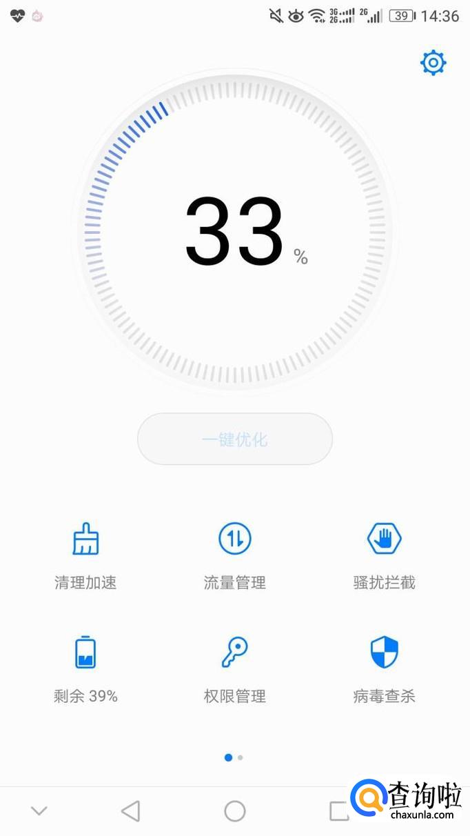 当出现分数时,说明已经检测完毕了,点击分数下面的“一键优化”按钮。