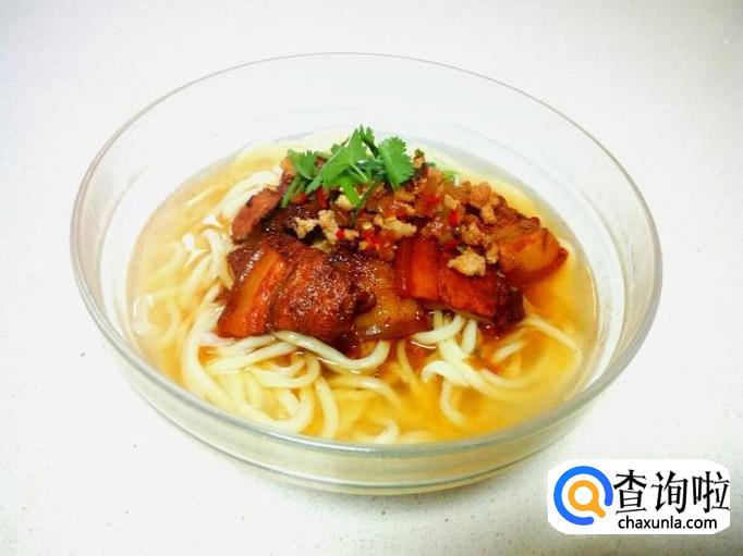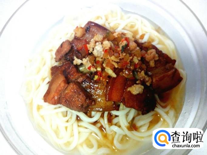把炒好的香辣酱,五花肉片,放在面上,再浇些汤汁即可(香辣酱和肉片根据个人口味,选择放入的量)。