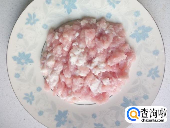 另用一块五花肉,切成肉末。切好葱,姜备用。