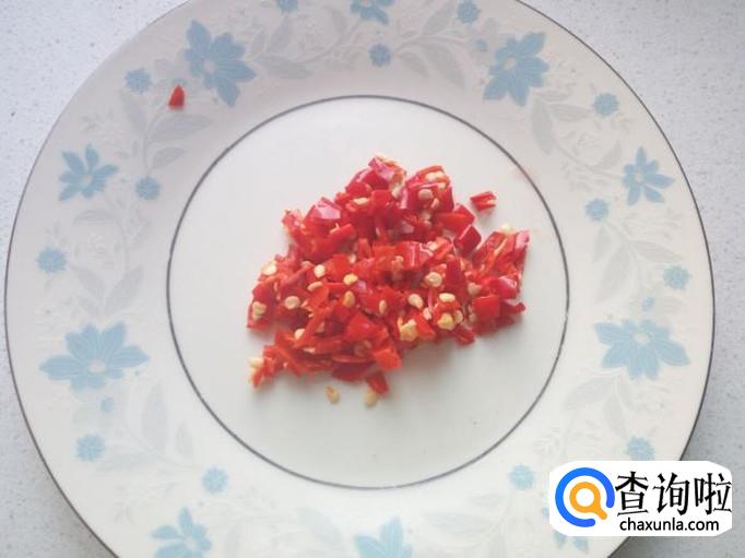 红辣椒用水清洗干净,切成碎末。