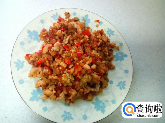 放入五香粉,料酒,酱油,少许味精,炒成香辣酱,盛出备用。