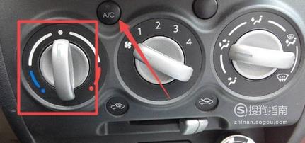 一般的汽车都会有这三个转钮,第一个转钮可以选择“热风”或者是“冷风”,往蓝色转,就是“冷风”,往红色方向转就是“热风”,选择好后再按“A/C”键就是开启了。