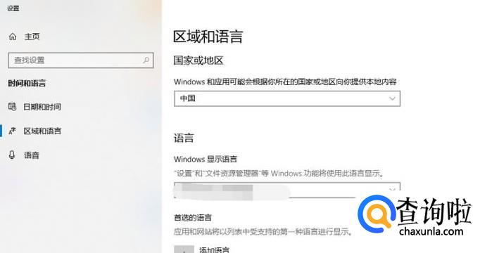 进入“区域和语言”页面,如图所示。