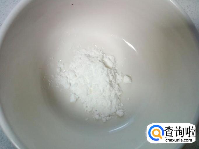 碗里放入一匙儿淀粉,兑水,勾成芡汁。