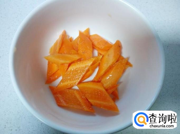 胡萝卜去皮,用水清洗干净,控干水分,切成片。