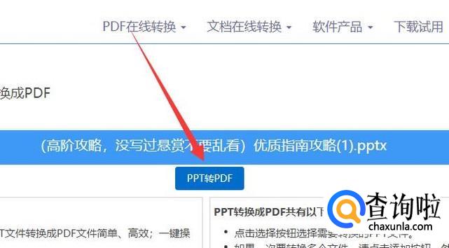 进入下一页面之后,点击“PPT转PDF”按键即可完成转换,如图所示。