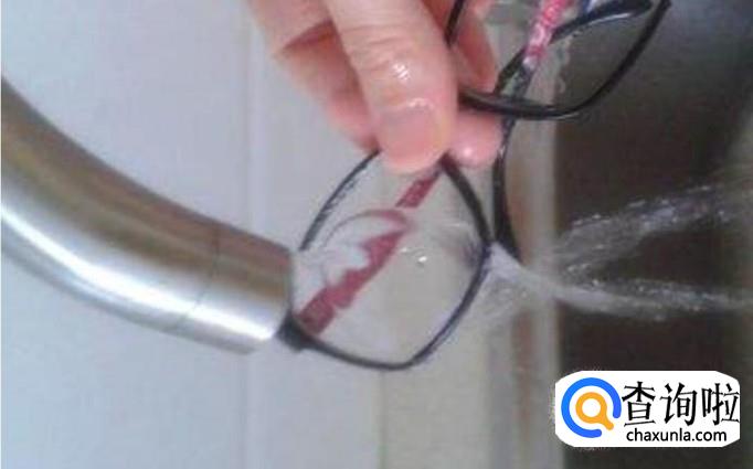 首先,把眼镜放在水龙头上冲一下,目的是把眼镜沾上的比较大的脏物给充掉。