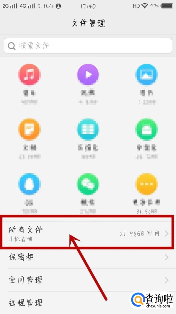 打开手机的文件管理,打开“所有文件”,如图所示。