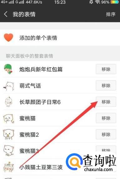 进入之后,点击“移除”即可将表情包删除,如图所示。
