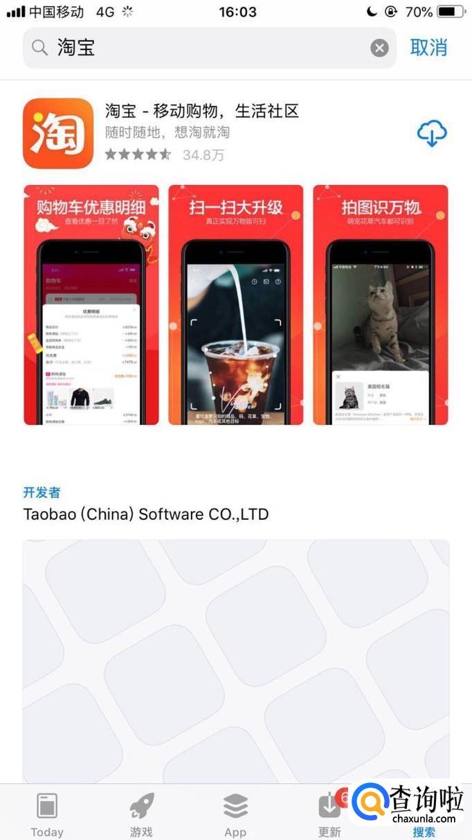 然后输入淘宝并点击搜索,如下图所示。