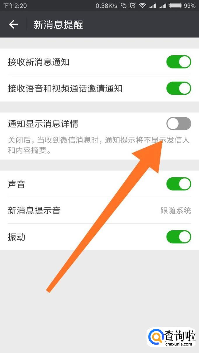 关闭【通知显示消息详情】后面的开关