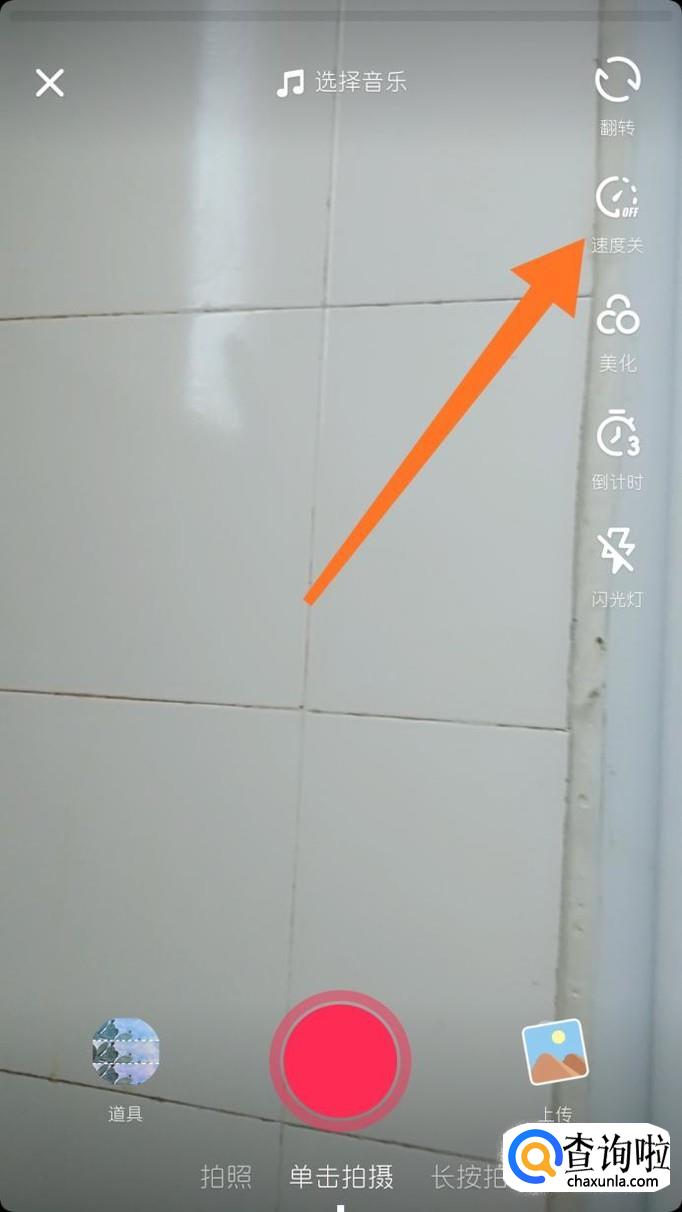 然后进入了视频拍摄页面,看到右上角有一个速度开关,点击打开。