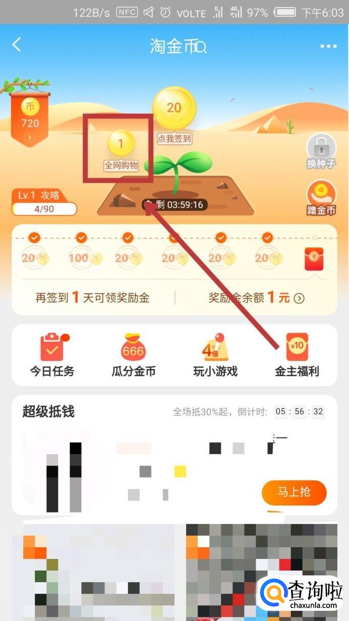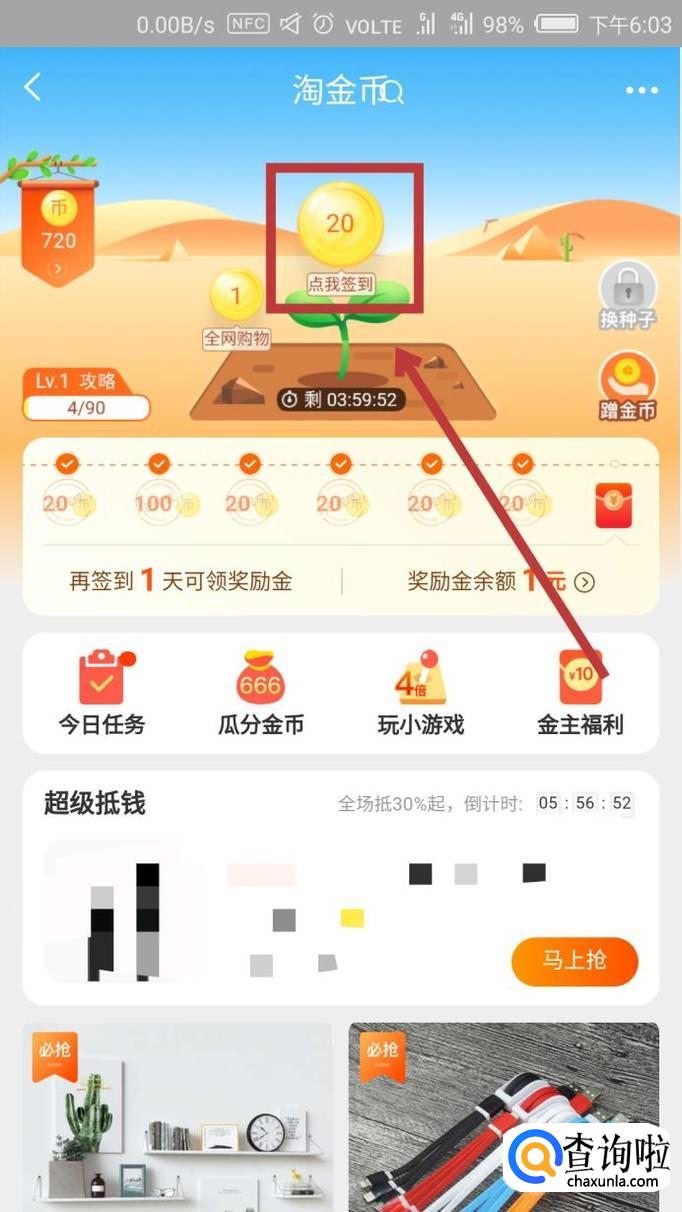 手机淘宝上有一些小游戏,有些游戏有奖励金,这些奖励金中有些属于淘金币,我们也可以多玩一些小游戏,也能获得淘金币。