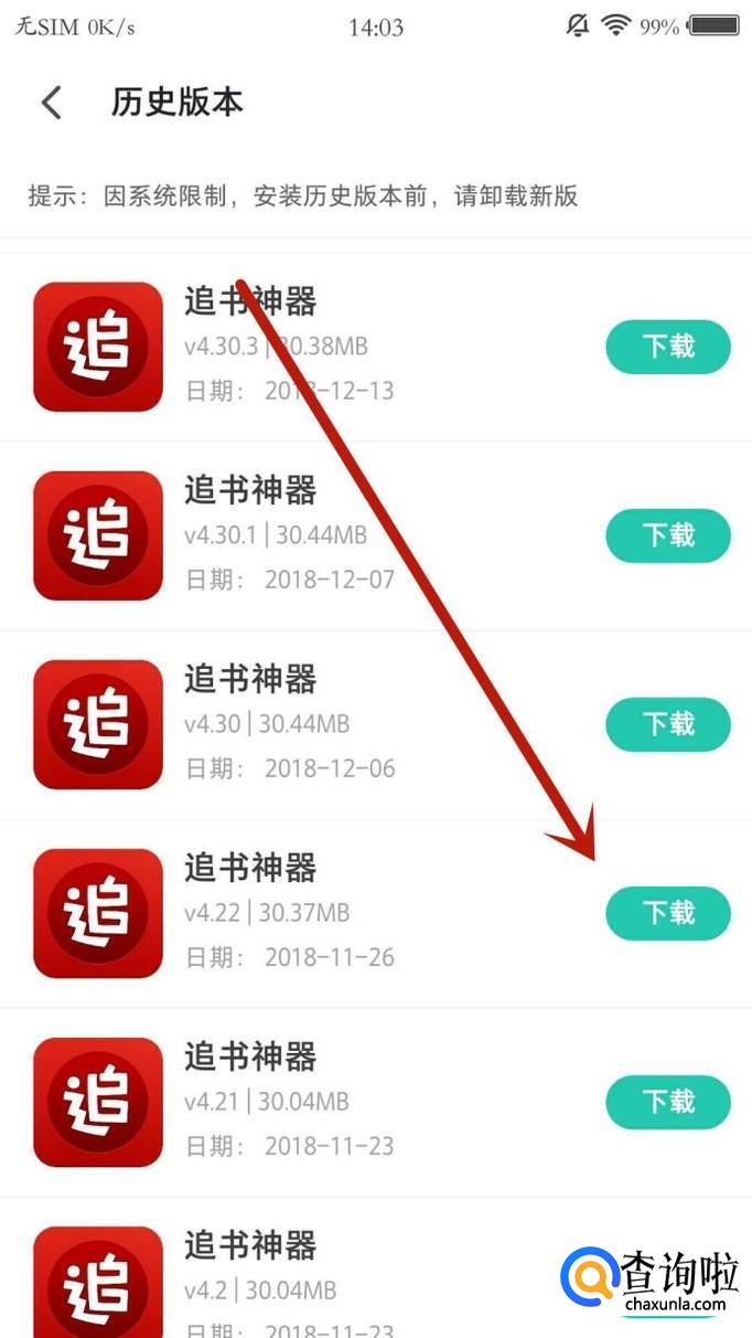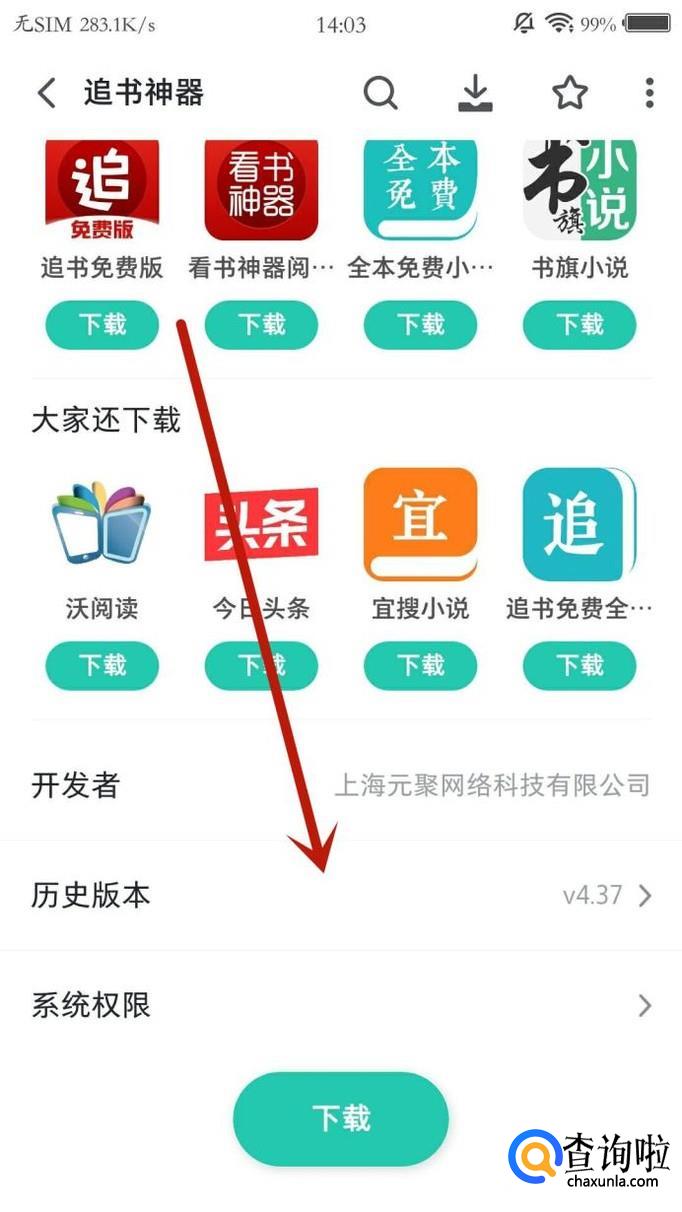 追书神器下载旧版本,可以在应用市场重新下载“追书神器”,点击并进入搜索结果,滑到页面最底端,点击“历史版本”,找到想要下载的旧版本,点击“下载”即可