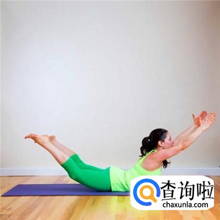这个动作既能够让臀部圆紧翘,还能打到快速瘦腰的效果,整个人趴下,腹部着地,头部和双腿努力往上翘。