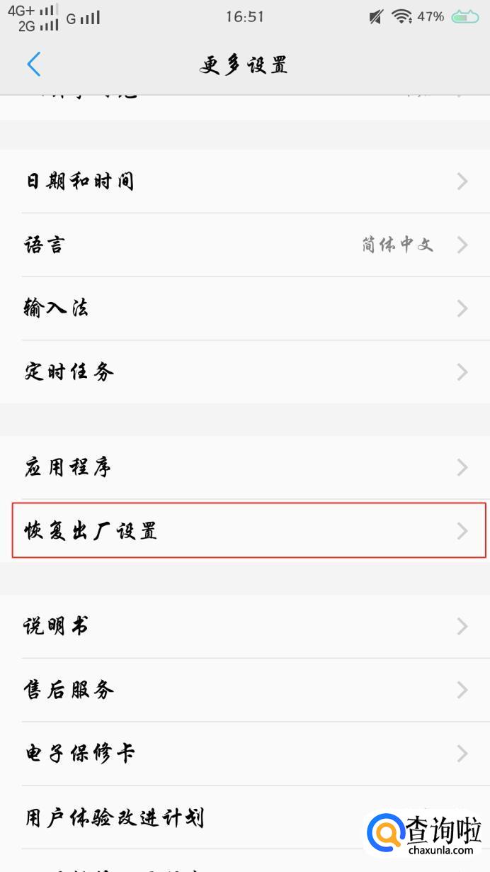 点击【恢复出厂设置】。