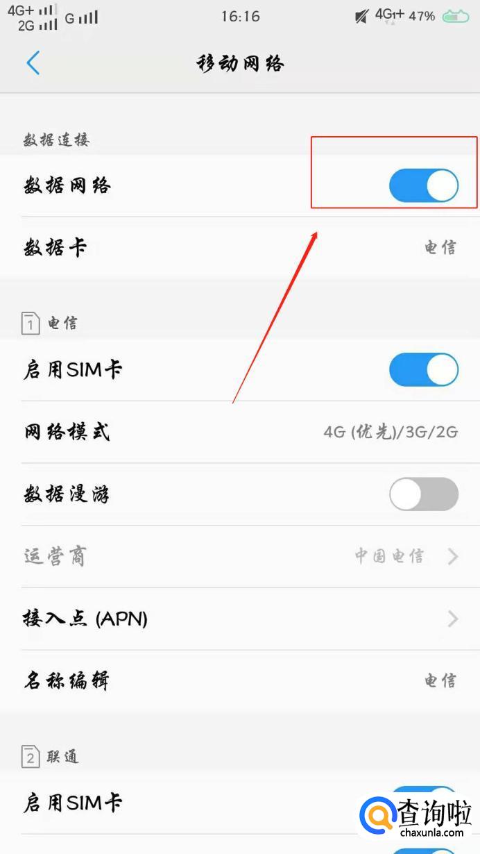1.确认一下4G网络是否开启。