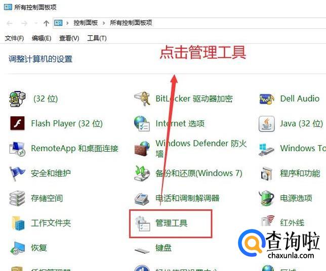 接下来在控制面板中点击管理工具选项,如下图所示