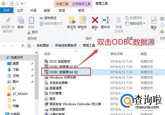然后进入管理工具我们点击ODBC数据源选项,这里大家根据自己的系统版本选择即可,如下图所示